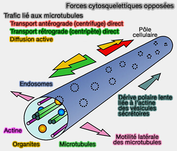- soit en opposition aux microtubules (Active diffusion and microtubule-based transport oppose myosin forces to position organelles in cells 2016).
