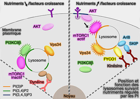 PI(3)P généré par Vps34 sur les membranes endosomales serait nécessaire au transport des lysosomes vers la périphérie cellulaire et à l'activation de mTORC1 dépendante du complexe protrudine/FYCO1/KIF5.