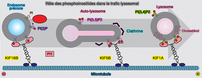 - Au cours de ce processus, la clathrine provoque un regroupement des lipides sur les membranes autophagosomales pour former des microdomaines enrichis en PI(4,5)P2 (Kinesin 1 Drives Autolysosome Tubulation 2016).