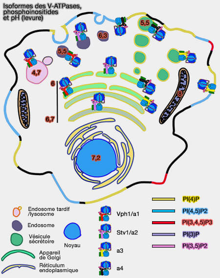 Isoformes des V-ATPases, phosphoinositides et pH (levure)