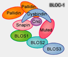 - Plusieurs études ont suggéré que des variations dans les gènes codant pour la dysbindine et d'autres sous-unités de BLOC-1 sont corrélées à un risque accru de schizophrénie chez l'homme (The schizophrenia susceptibility factor dysbindin and its associated complex sort cargoes from cell bodies to the synapse 2011).