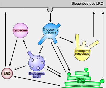2. Dans d'autres types de cellules qui utilisent des LRO, tels que les mélanocytes et les cellules endothéliales, des lysosomes conventionnels existent également, et la biogenèse des LRO diverge de la voie utilisée par les lysosomes conventionnels.
