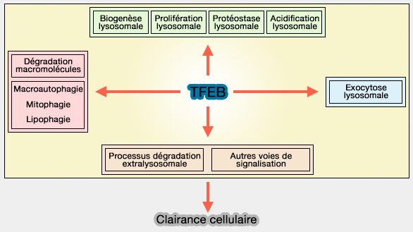 - Les cycline kinases activent TFEB et TFE3, qui améliorent la biogenèse des lysosomes et l'autophagie.