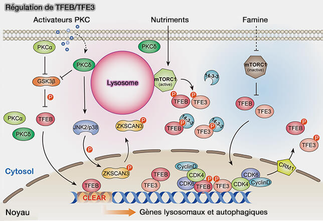 TFEB/TFE3 est régulé aussi par PKC (Protéine Kinase C).