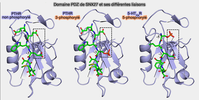 Des centaines de récepteurs de cargos interagissant avec le domaine PDZ de la protéine SNX27 ont été identifiés (A molecular code for endosomal recycling of phosphorylated cargos by the SNX27–retromer complex 2017).