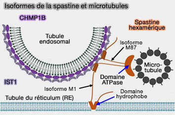 La protéine de scission des microtubules, la spastine, et l'ESCRT-III du complexe ESCRT sont impliqués dans la scission des tubules des endosomes de recyclage (An ESCRT–spastin interaction promotes fission of recycling tubules from the endosome 2014).