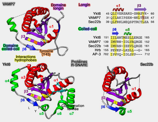2. Les protéines R-SNARE Ykt6 et SEC22B font partie de sous-complexes t-SNARE, sont placées comme des Qc-SNARE.