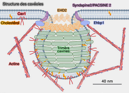 (Figure : vetopsy.fr d'après Matthaeus et coll)la limitation de la mobilité des cavéoles à l'intérieur de la membrane.