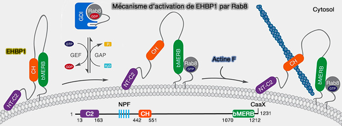 1. En solution, EHD2 se dimérise en conformation inhibée, en particulier grâce au motif GPF ( inhibition des EHD).