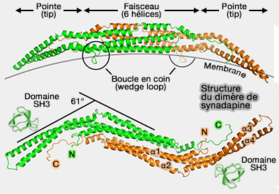 Des réseaux d'ordre supérieur sont formés par des interactions intermoléculaires pointe à pointe et latérales par la syndapine qui recouvre la surface de la membrane.