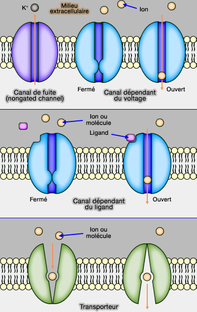 - les canaux ioniques,