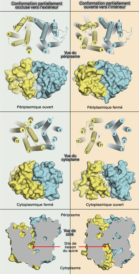 L'occlusion du site de liaison local d'un côté de la membrane est une condition préalable structurelle à la transition bascule-interrupteur qui ouvre l'accès au côté opposé (The SLC2 (GLUT) Family of Membrane Transporters 2014).