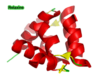 La relaxine est une hormone peptidique de deux chaînes (A et B) de 24 à 29 acides aminés reliées par des ponts disulfure. Sa composition varie de plus de 50% suivant les espèces.