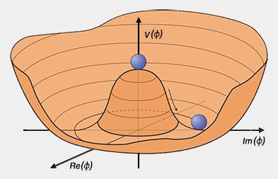 Cette symétrie est brisée spontanément par l'introduction du boson de Higgs de spin $0$ par le mécanisme dit de Higgs : cette brisure génère les masses des particules que ce soit celles des bosons (sauf le photon dont la masse est nulle), que celles des fermions.