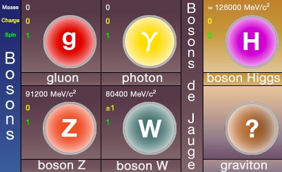 - Le boson de Higgs - boson scalaire de spin $0$ - donne une masse aux particules (le graviton est encore hypothétique).