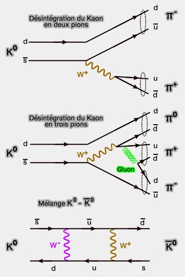 - W0, d'isospin faible $T_3=0$ est émis lors d'interactions dans lesquelles $T_3$ n'est pas modifié.