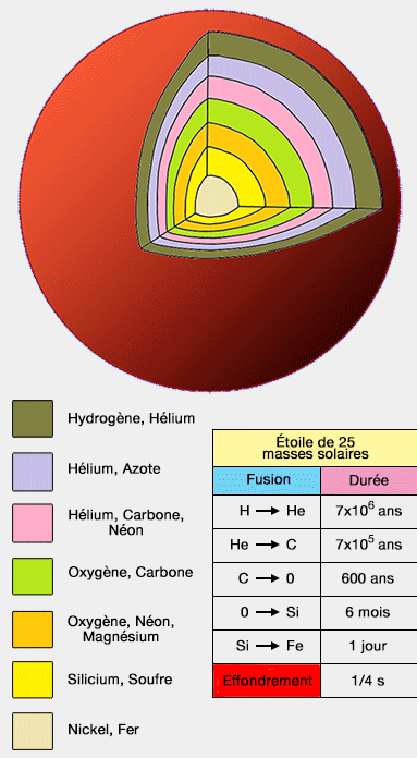 - La photodésintégration est endothermique pour les noyaux plus légers que le fer ($^{56}_{26}Fe) et exothermique pour les noyaux plus lourds.
