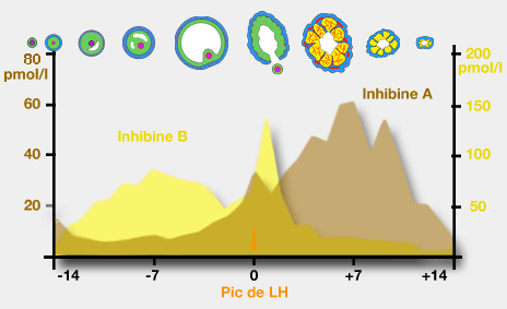 B et de la follistatine (qui lie l'activine), ce qui diminue, en retour, la sécrétion de FSH, essentielle pour la dominance du (ou des) follicule.