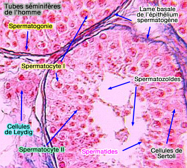 Nous avons vu que les cellules formées se déplacent progressivement de la périphérie (lame basale) vers la lumière du tube séminifère.
