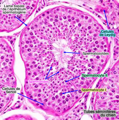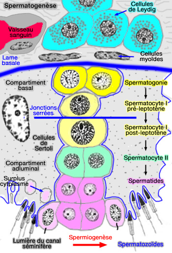 - la spermiation, passage des spermatozoïdes dans la lumière des tubes séminifères.
