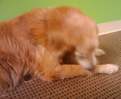 Le chien qui se toilette dépose des phéromones salivaires sur son poil, ce qui lui permettra de communiquer activement ou passivement.