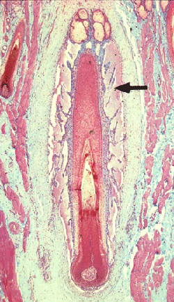 par de nombreuses fibres provenant de la région basale de la vibrisse.