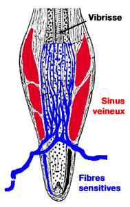 Entre ces sinus et le follicule pileux se trouve, de chaque