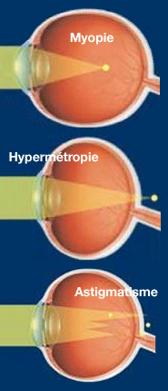 Les rayons lumineux sont déviés (réfraction) plusieurs fois dans le globe oculaire :