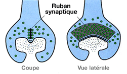 Chaque invagination possède un ruban synaptique, structure membranaire